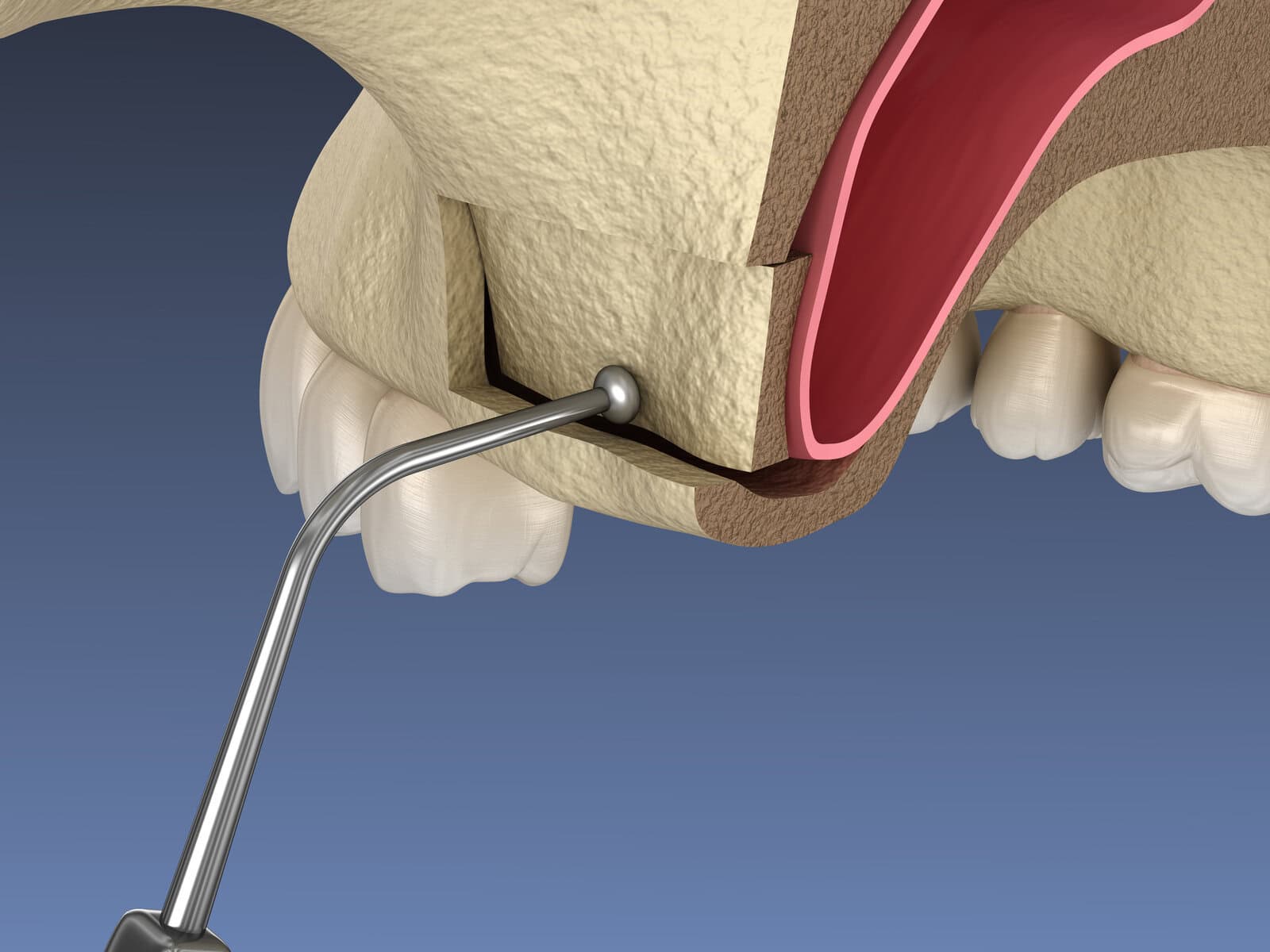 Der Knochenaufbau ist ein chirurgischer Eingriff, der sowohl im Oberkiefer als auch im Unterkiefer durchgeführt werden kann und dazu dient, ein Knochendefizit auszugleichen.